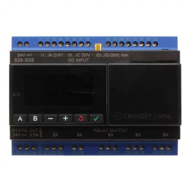 Box | em4, B26-2GC | Obsolete | 16 - Digital (4), Analog/Digital (12) | 10 - PWM/Solid State (2), Relay (8) | Non-Expandable | 24VDC | LCD - White Characters, Backlight | 18, 18, 18, 18 | USB | 2K Octets | Chassis Mount, DIN Rail | |
